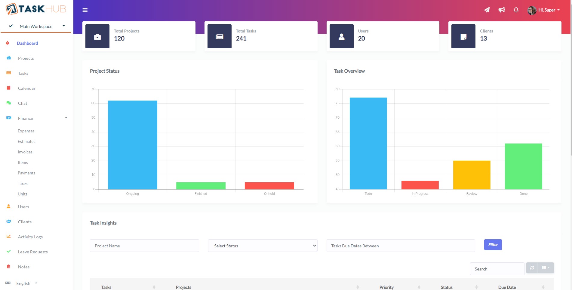 Tasks@IT Future project management software offers great features like dashboard, projects, tasks, chat, finance, activity logs, notifications, and mail. you can share and work with this tool with your whole team and save time and increase your productivity.